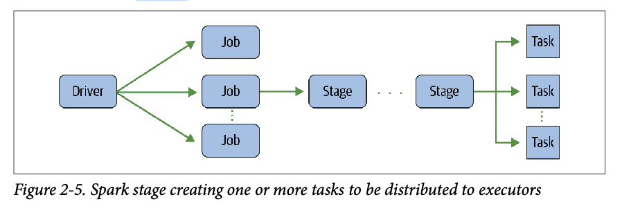 - Job -> stage 즉, 각 Job마다 Stage가 parallel 하게 또한 연속적인 형태로 붙을 수 있다.