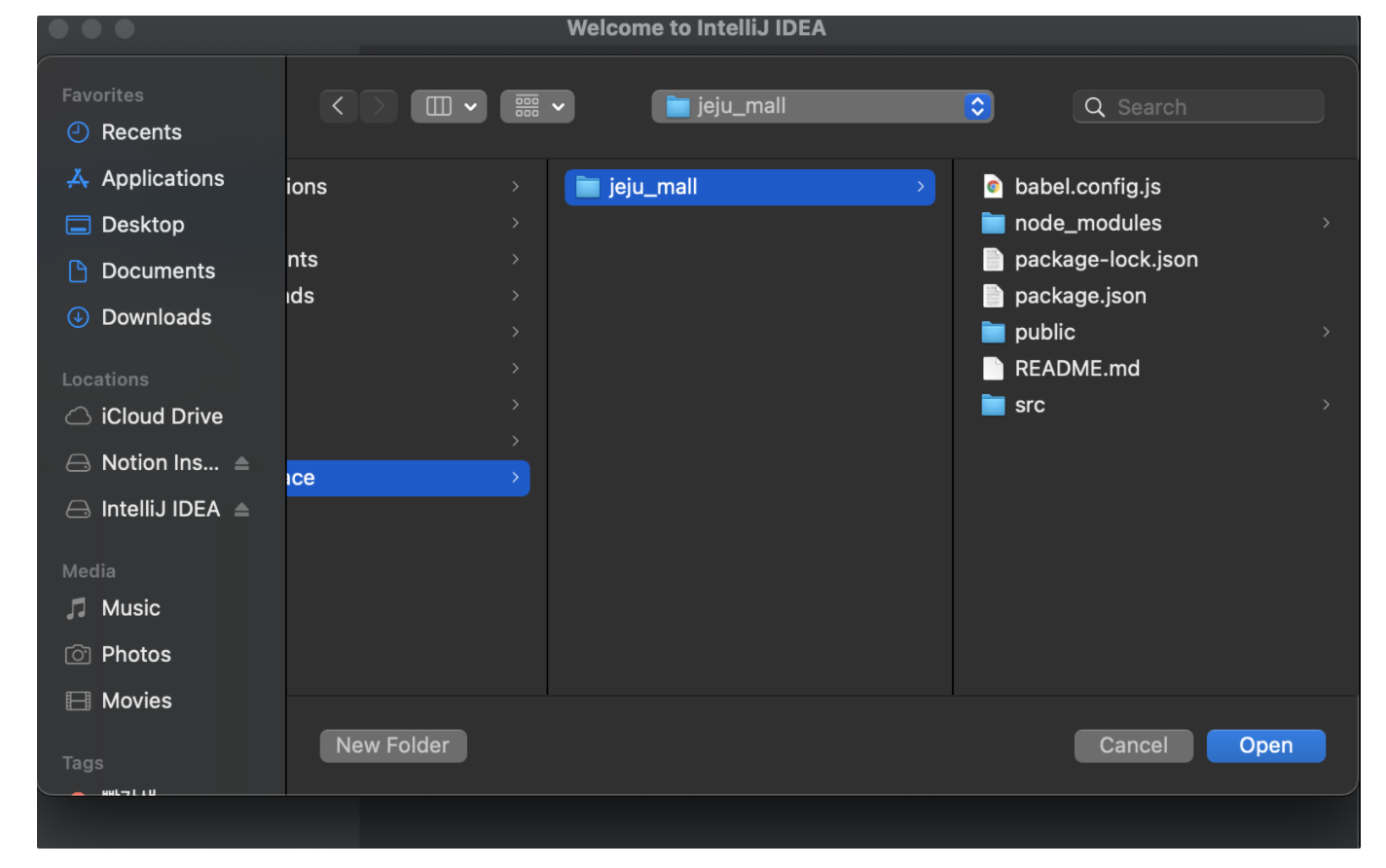 - 위에서 생성했던 jeju_mall 프로젝트를 선택 합니다.