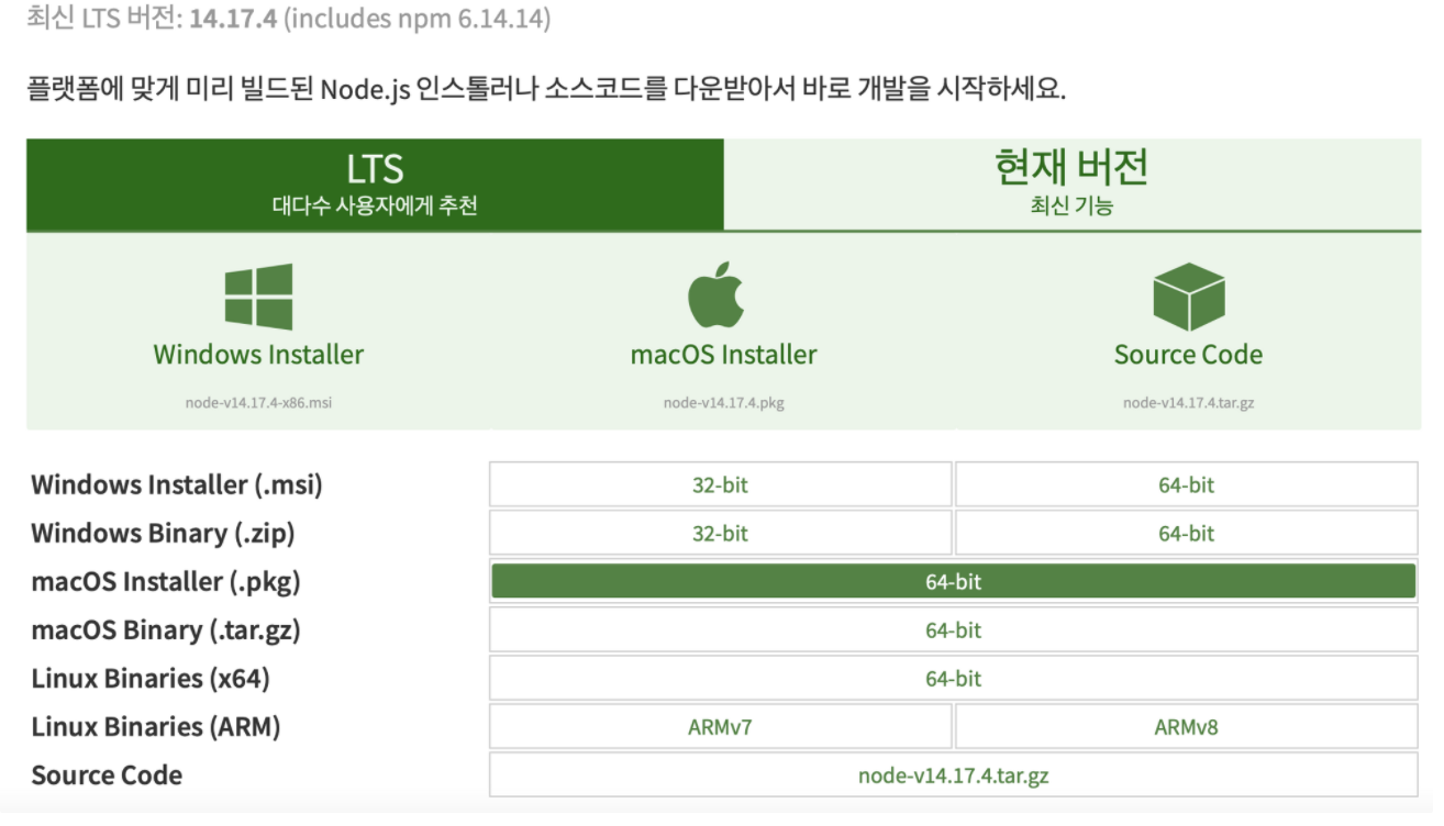 - https://nodejs.org/ko/download/