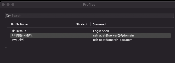여기에서 매우 불편했던..서버 접속 리스트를 iTerm에서 바로바로 관리할 수 있는 기능이 있습니다.