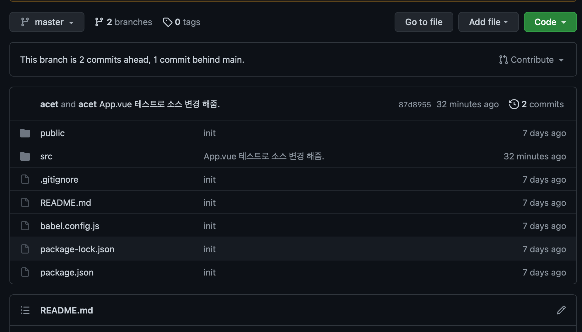 - git commit -m "App.vue 테스트로 소스 변경 해줌."