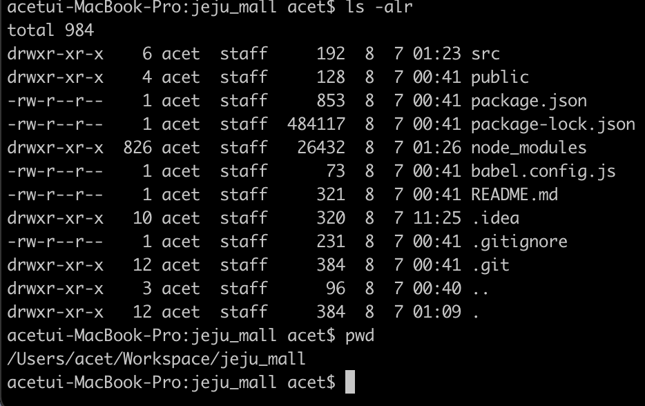 acetui-MacBook-Pro:jeju_mall acet$ git init Reinitialized existing Git repository in /Users/acet/Workspace/jeju_mall/.git/ - git status를 통해 변경 된 내용이 있는지 확인 한다.