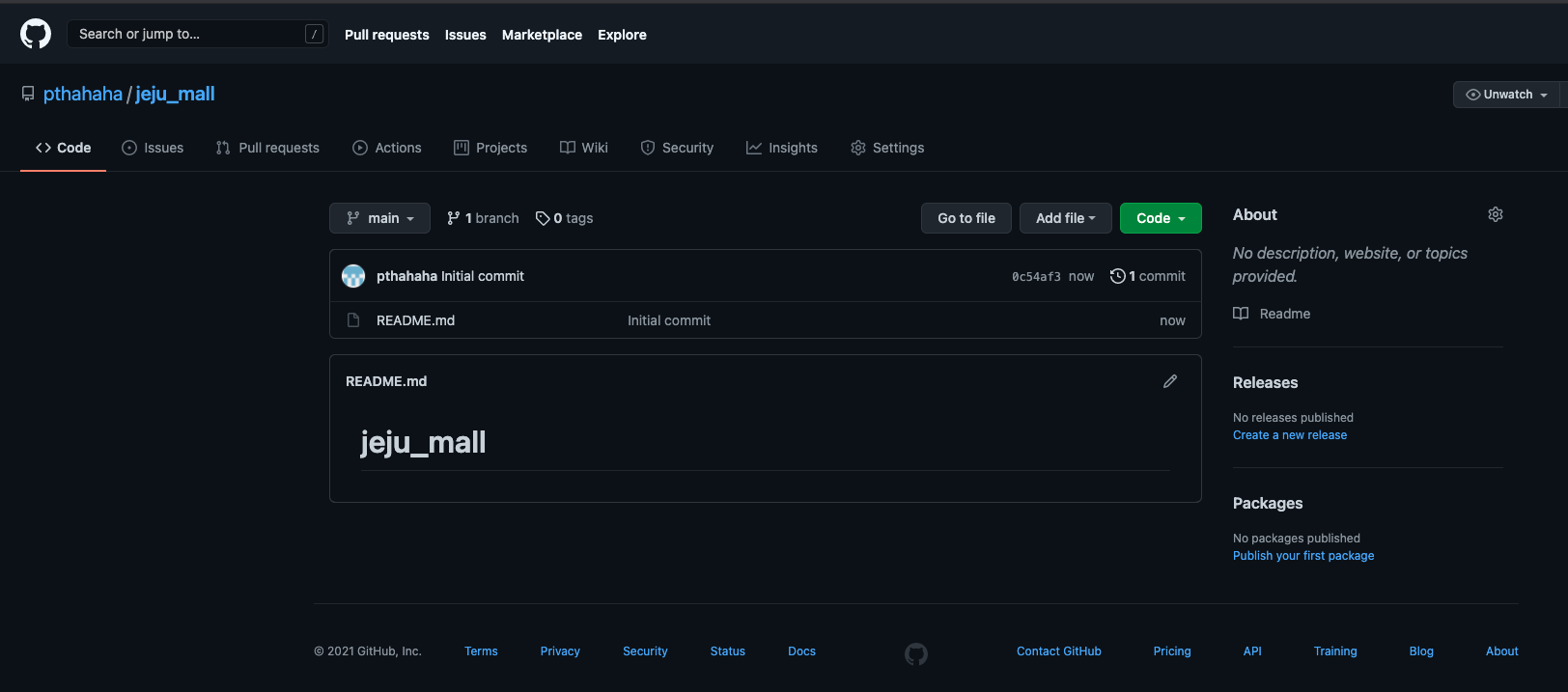 - 레파지토리명은 jeju_mall로 하도록 하겠습니다.