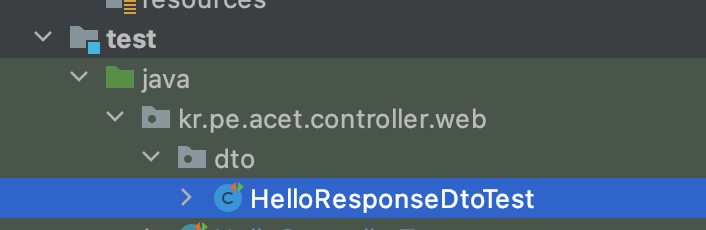 테스트 코드도 동일한 패키지에 Test를 붙여서 만들어줍니다.