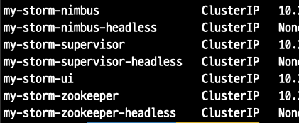 nimbus, supervisor, zookeeper 요 3개 모두 headless 서버스가 있다.
