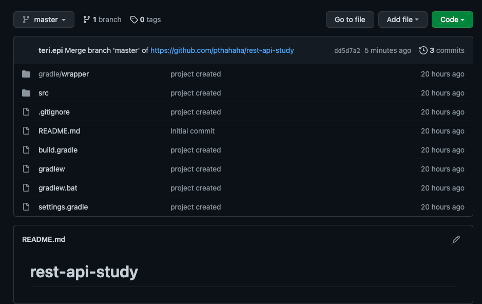 error: failed to push some refs to 'https://github.com/pthahaha/rest-api-study.git'