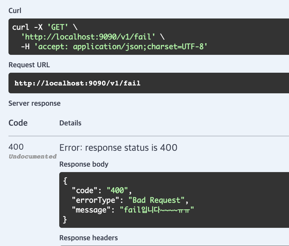 또한 리턴값이 우리가 만든 CustomErrorResponse.java 입니다.