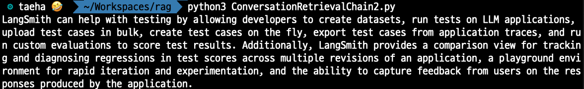 이를 통해 이 LLM과 채팅 방식으로 상호 작용할 수 있으므로 이전 질문을 기억합니다.