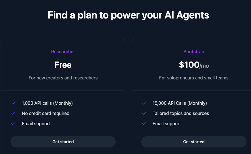 우선 api키를 얻기 위해 https://tavily.com/에 접속하여 Free의 Get started 를 합니다.