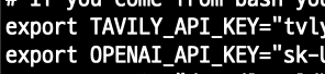 key 복사 후에 TAVILY_API_KEY라는 이름으로 export 해줍니다.